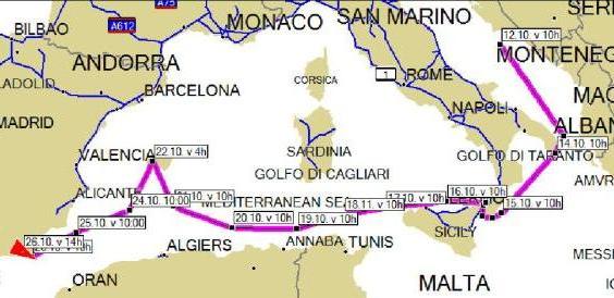 17.10.- od západního výběžku Sicilie na západ, fouká silný protivítr