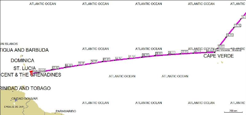 19.12. 14:00 odplouvám z Bridgetownu (Barbados) směr Martinik - Marine. Vyrážím sám. Martin si užije ještě dva dny na Barbadosu a pak letí na Vánoce do ČR. Vzdálenost 120NM, takže na místě bych měl být zítra dopoledne. Předpověď slibuje vítr E do 15kn. Měla by to být pohodová plavba.