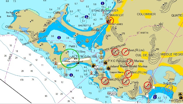 11.5. 18:30 konečně jsme zakotvení v laguně na francouzské straně Saint Marten. Nejprve jsme čekali hodinu na otevření mostu, pak jsme si „zakotvili“ kýlem do bláta a loď se z mělčiny podařilo stáhnout až přes kotvu vyhozenou dozadu, taženou na vinšně a plný chod motoru. Podruhé už to bylo lepší a pod kýlem je 1m vody.