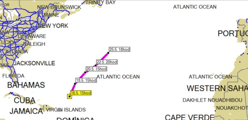 13.5. loď je připravena a zítra 14.5. po 8 hodině vyplouváme směr Azory na ostrov Faial. Zda to bude trasa po přímce St. Martin - Faial nebo severním obloukem záleží na vývoji počasí. Přímá trasa je 2.100NM severní může být až 2.400NM. Proto také doba plavby je těžko odhadnutelná. Můj odhad je 3 - 4 týdny. Jak to dopadne se dozvíte na těchto stránkách.