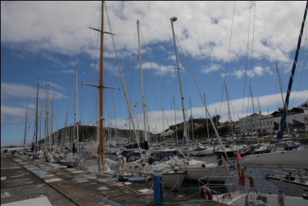 5.6. HORTA získali jsme místo v marině, tak přejíždíme. Kotví se tady bokem k molu a min. 4 lodě vedle sebe. Cena za kotvení 18 EUR pro loď do 15m je přijatelná. Včetně proudu a vody, ale chce to mít dost dlouhé kabely a hadice ... máme :o) Provádíme běžnou údržbu a úklid lodi. Počasí slunečné a teplota nad 20°C. Z jedné strany máme staří anglický pár, který přijel taky ze St. Martinu (trvalo jim to 29 dnů a najeli 2.900NM) to si dali slušný severní obchvat. DoDo najelo přesně 2.352 NM za 21 dnů. Předpokládaný odjezd směr GIB v úterý 8.6. Teď je bezvětří a od úterý se má rozfoukat N, takže pro nás příznivě.