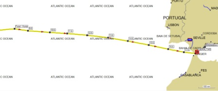 30.10. 11:00 odplouváme z Gibu. Fouká příjemný E do 15kn. Po vyplutí z Gibraltarské úžiny se stáčí na NE.