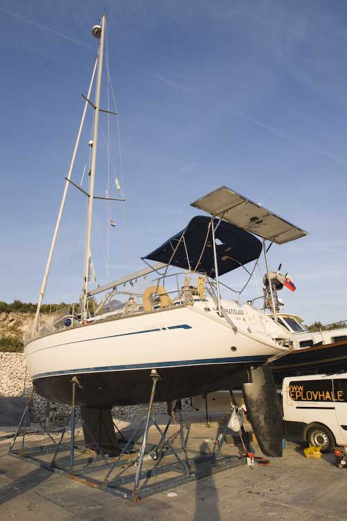 5.10. začíná plánovaná údržba lodi. Namontovali jsme solární panely a windgenerátor.