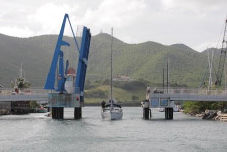 14.5. 2010 (pátek) máme budíček před 7h. Kotvíme na francouzské straně Saint Martinu v laguně u města Marigot. Máme cca. hodinu na uložení posledních věcí , vytažení dingy a motoru na loď a vypluti k padacímu mostu, který se otevírá v 8:15 a po jeho zvednutí je možné opustit lagunu.